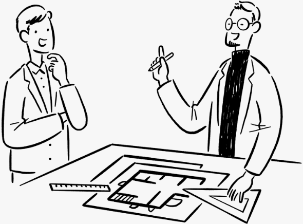 図面に描かれた建築物を確実に仕上げるための施工・監理はもちろん、ご依頼者様へのご提案のお手伝いもお気軽にご相談ください。また、ものづくりの担い手として、完成後の点検や万が一の時の緊急対応なども責任を持ってサポートします。